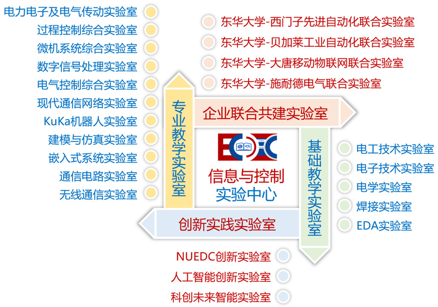 根据学校规划及学科发展需要,学院将原电子电工中心与信息学院相关专业实验室进行设备与场地的资源整合,组建为具备教学及实践功能的综合复合型实验中心,即“信息与控制实验中心”。